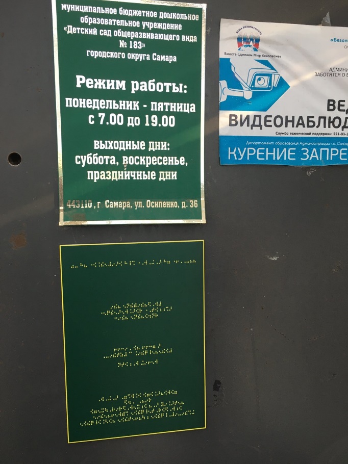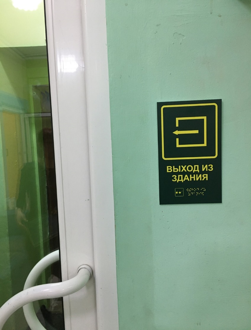 Вывески со шрифтом Брайля на контрастном фоне - имеются.