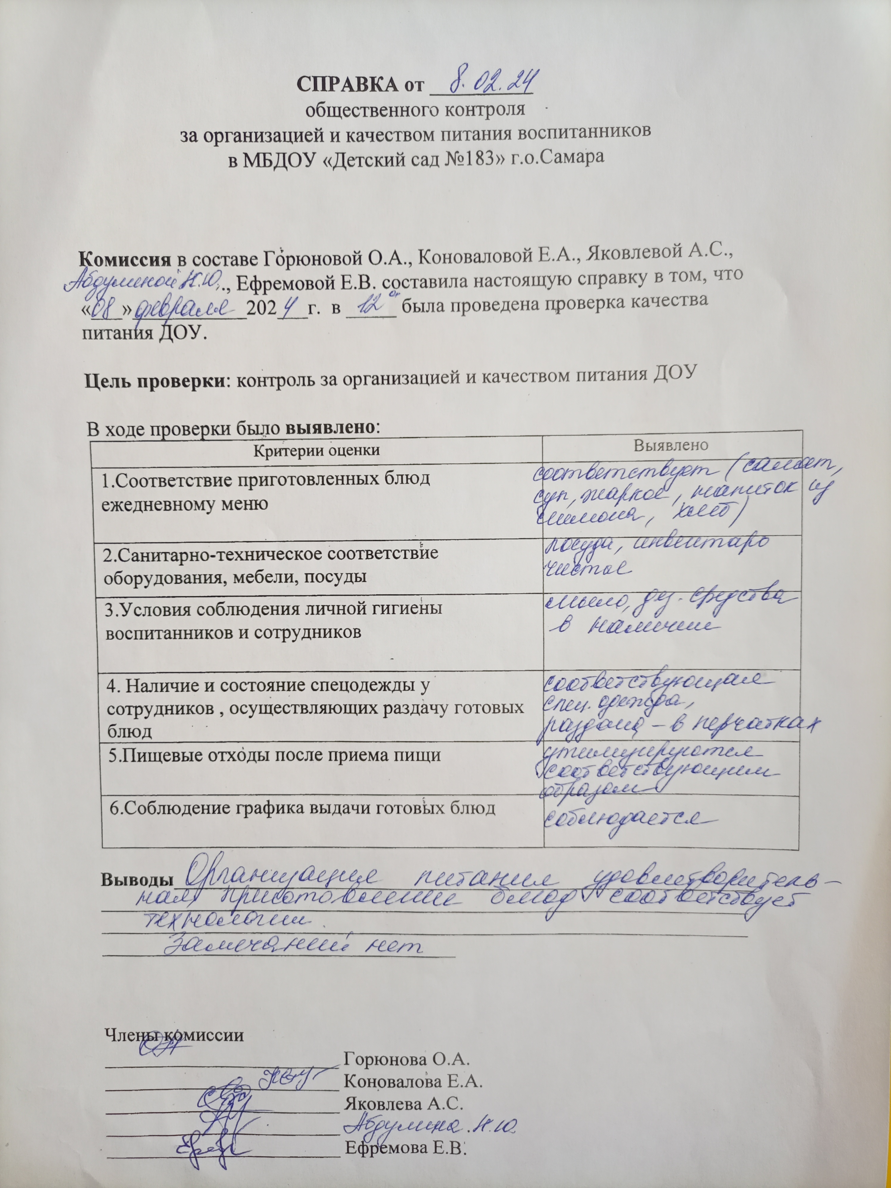- Положение о комиссии по общественному контролю за организацией и качеством питания в муниципальном бюджетном дошкольном образовательном учреждении «Детский сад № 183 » городского округа Самара